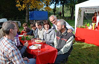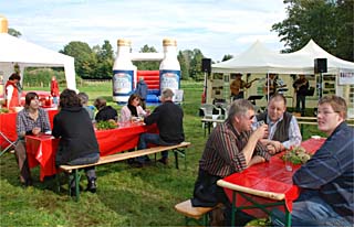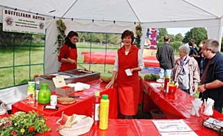| Für gute Stimmung sorgte die Countryband Grand Canyon im Ausstellungspavillon, die leckere Büffelbratwurst servierte Rita Biel mit Tochter Stefanie und für die Kinder hatte TURM SAHNE zwei Kletter- und Hüpfburgen aufgebaut. |