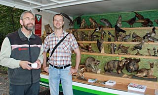 Tierökologe Dr. Krawczynski (rechts) war am Info-Mobil der Oldenburger Jägerschaft ein guter Gesprächspartner für Revierförster Karl-Heinz Frese. |