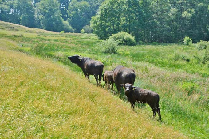 Sommerweide mit Wasserbüffeln im Naturdenkmal Rackelsberg