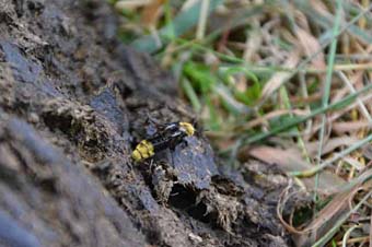 Der seltene Behaarte Kurzflügelkäfer Emus hirtus, der bisher in dieser Region seit einigen Jahren nur auf der Büffelweide am Forsthaus in Huntlosen anzutreffen war, wurde bereits im Juli 2013 mehrfach am Rackelsberg gesehen (Abb. unten rechts).