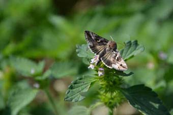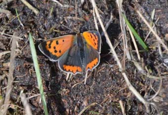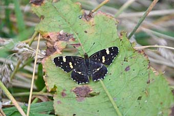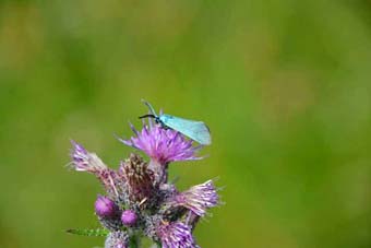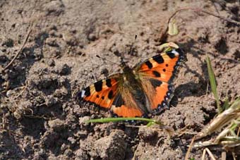 Von links nach rechts: Tagpfauenauge (Nymphalis io), Landkärtchen (Araschnia levana), Kleiner Feuerfalter (Lycaena phlaeas), Waldbrettspiel (Pararge aegeria), Zitronenfalter (Gonepteryx rhamni), Gammaeule (Autographa gamma), Kleiner Fuchs (Nymphalis urticae), Gemeines Grünwidderchen (Adscita statices), Brauner Waldvogel (Aphantopus hyperantus), Behaarter Kurzflügelkäfer (Emus hirtus) (anhand der Fotos bestimmt)