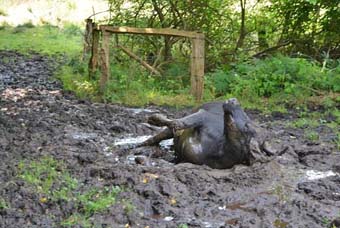Ein erfrischendes Schlammbad kurz vor der Geburt.