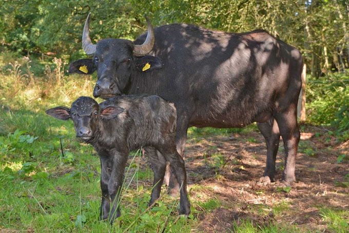 Auch Büffelfärse „Rana“ (rechts) bekam am 25. September 2014 noch ihr Kalb „Rena“