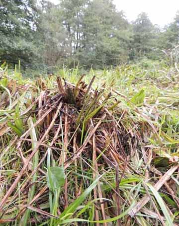 Bereits im zweiten Jahr der Sommerbeweidung mit Wasserbüffeln ab dem 18. Juni 2014 haben sich einige Aspekte deutlich verbessert. Sowohl Schilf als auch Adler- und Wurmfarn sind erheblich zurückgedrängt worden. Schilf und Wurmfarn (Abb. rechts) werden massiv verbissen, während der Adlerfarn unter dem Tritt der Büffel zu leiden scheint.
