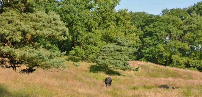 Seit dem 18. Juni 2013 weiden während des Sommers zunächst zwei Büffelkühe mit ihren Kälbern in dem etwa drei ha großen flächenhaften Naturdenkmal Rackelsberg in Sandhatten/Landkreis Oldenburg. (Abb. 1)