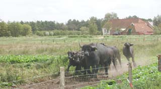 Die Wasserbüffel sind an diesem Tag besonders aufgeschlossen und zeigten den zahlreichen Besuchern und Medienvertretern einen "gestreckten Gallopp". | ||||||||||||